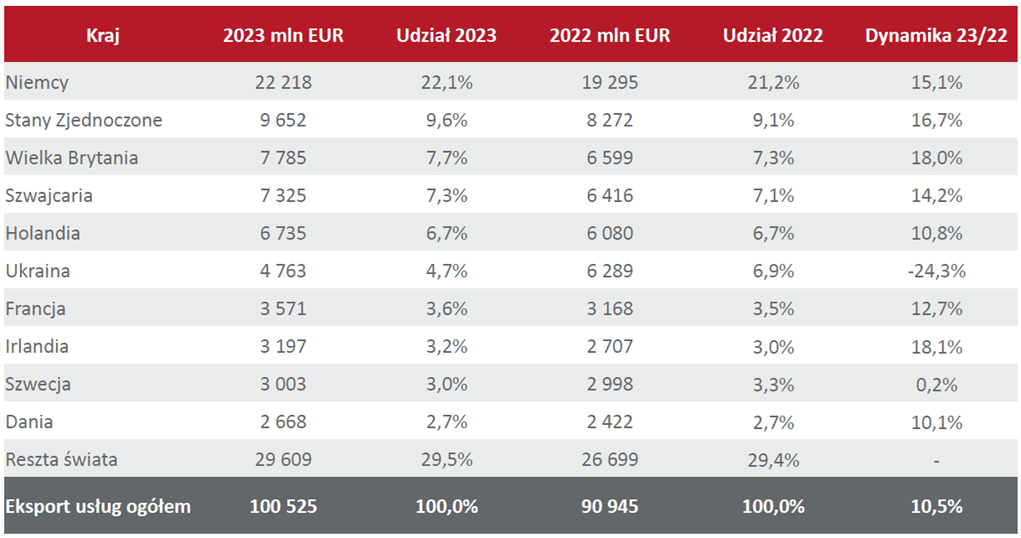 Key partners in Poland’s export of services in 2023