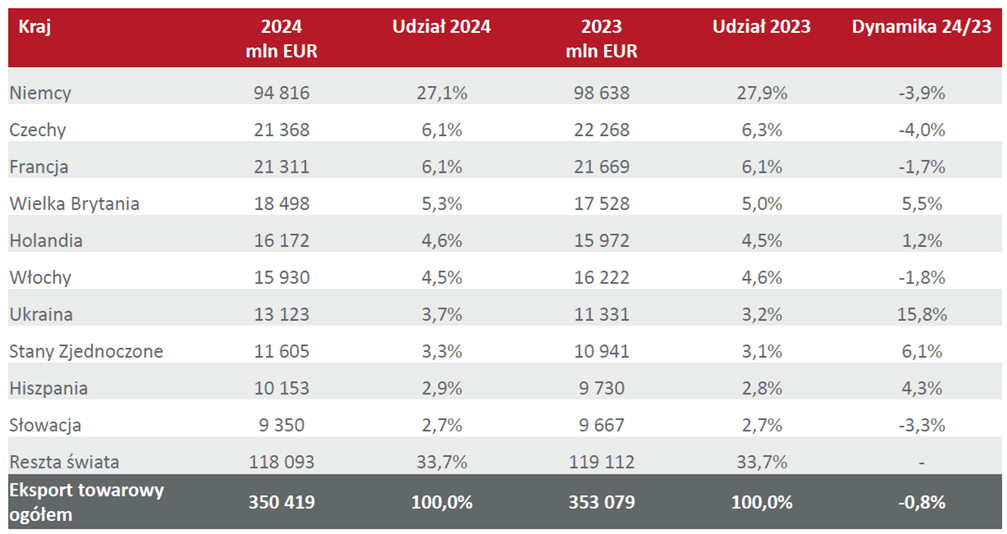 Key partners in Poland’s export of goods in 2024