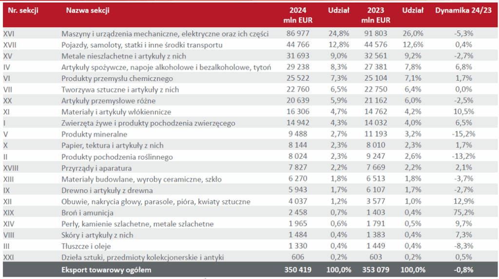 Key sections of goods in Poland’s export