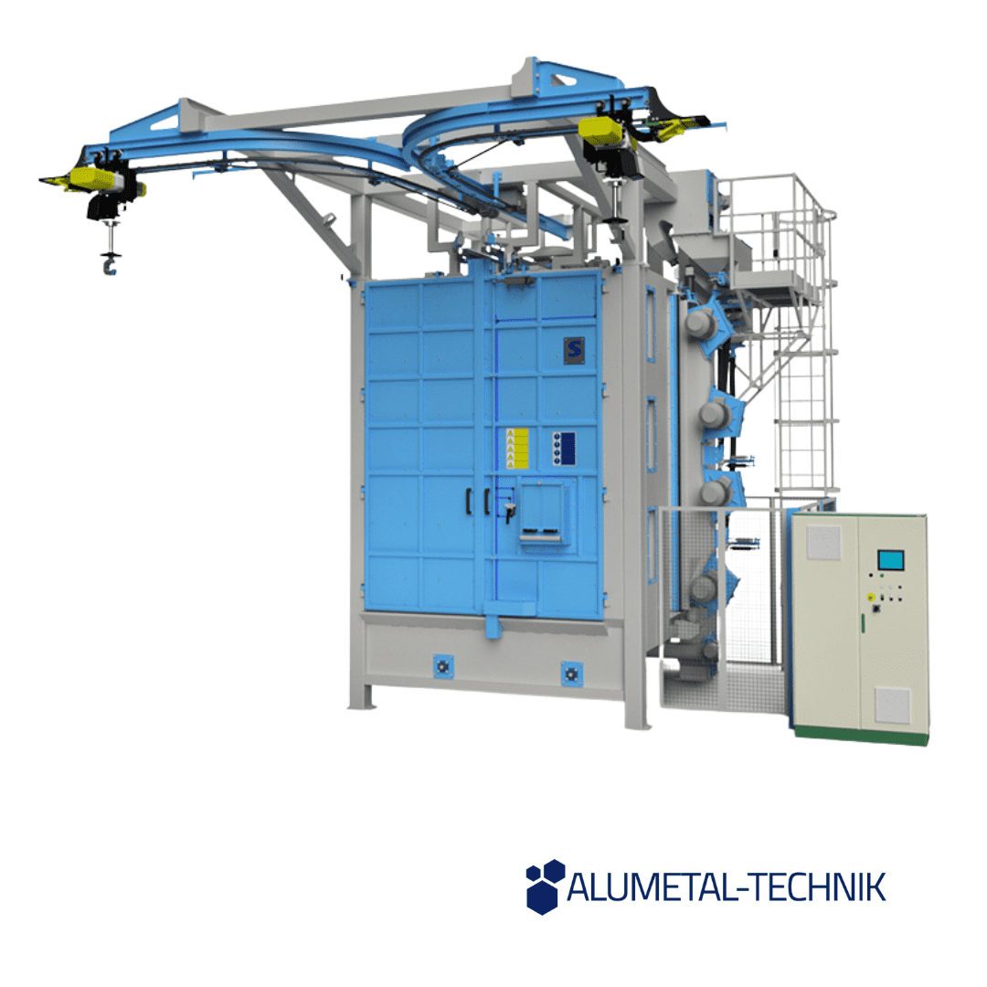Alumetal-Technik wheel blast machines in an industrial hall