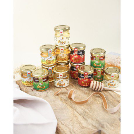 We offer a wide selection of honeys: multifloral, acacia, lime, buckwheat, honeydew, rapeseed, coriander, thyme, lavender, heather, phacelia - each of them with a unique taste and health properties. Our honeys come from the best beekeepers who care about the quality and naturalness of their products. We also offer honeys from various regions of the world as well as products of bee origin such as bee bread, pollen, propolis and royal jelly.
