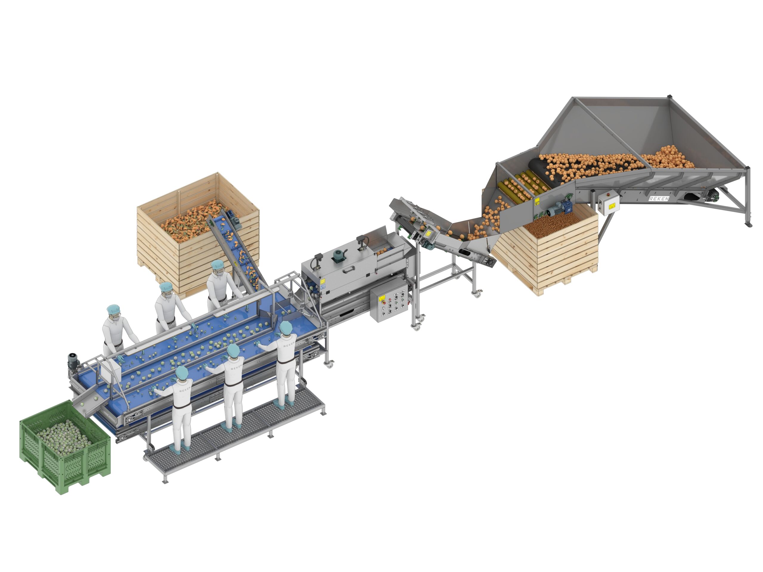 Reken is a team of specialists who design and implement modern technological lines for receiving, sorting, weighing, and packaging vegetables and bulk products. Our solutions are developed based on real needs, specific goals, and with investment efficiency in mind. We combine technological knowledge with practical experience and market awareness. Our goal is to create well-thought-out, reliable, and integrated solutions that not only function efficiently but also bring measurable