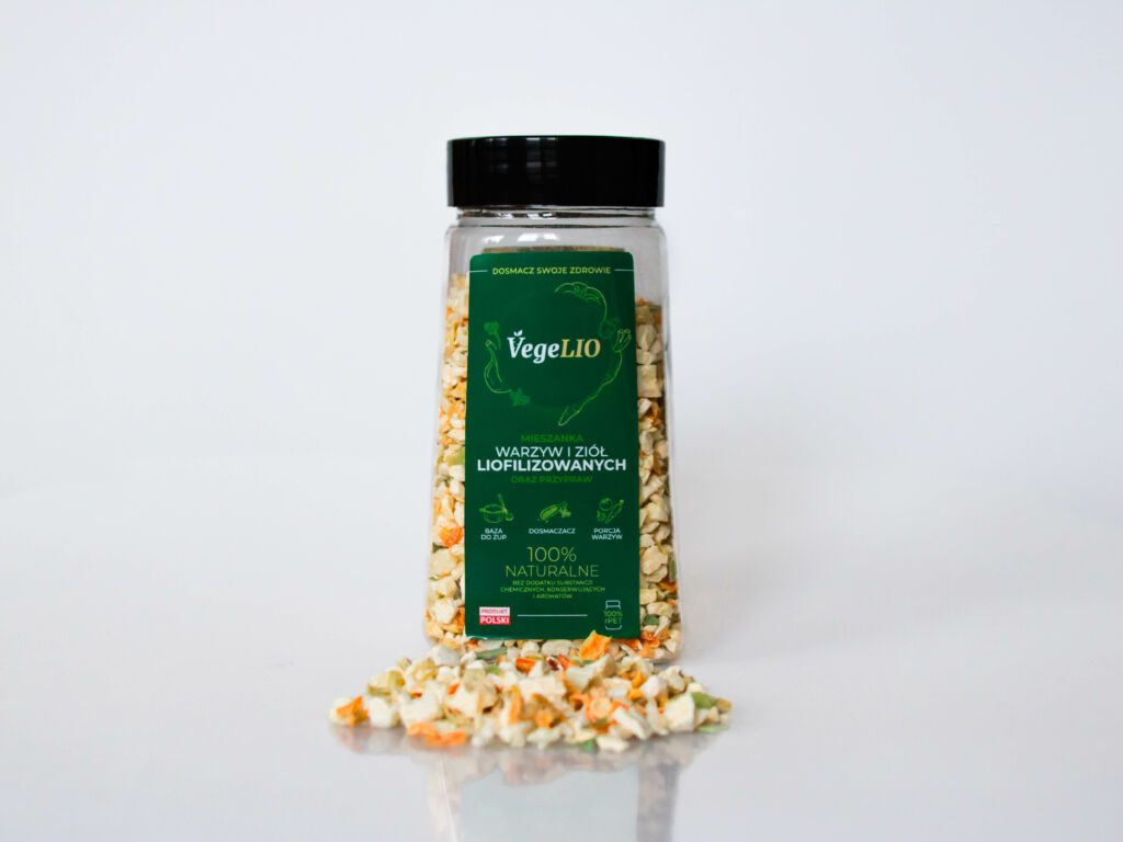 VegeLIO-blend of freeze-dried vegeatbles and herbs plus spices. Vegetables are crunchy and aromatic, herbs give depth of flavor and aroma, spices complete the whole composition. VegeLIO is an ideal solution for people who want to eat healthy, and at the same time appreciate the convenience and ease of preparing meals. With VegeLIO you can prepare vegetable broth, season any dish and add a portion of vegetables to your diet. VegeLIO is 100% natural, healthy, tasty and has long shelf life.