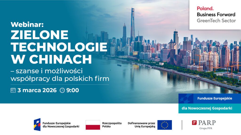 Już w kwietniu 2026 r. Polska Agencja Rozwoju Przedsiębiorczości zorganizuje stoisko narodowe na IE Expo China w Szanghaju. Z tej okazji 3 marca 2026 w godzinach 09:00-10:15 zapraszamy na webinar, podczas którego dowiecie się więcej o sektorze zielonych technologii w Chinach, o tym jakie szanse czekają na polskie firmy na tym rynku. Opowiemy również o targach IE Expo China, najważniejszych targi technologii środowiskowych w Azji oraz o możliwości promocji na tych właśnie targach w ramach polskiego stoiska narodowego.