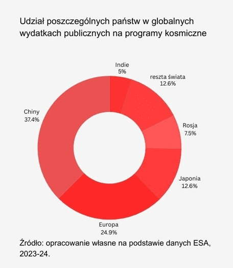 w kosmosie i dual-use – o podwójnym zastosowaniu militarnym i cywilnym – jest związane ze strategicznym znaczeniem przestrzeni kosmicznej dla bezpieczeństwa narodowego. Jeśli jeszcze w 2022 r. inwestycje w programy cywilne i wojskowe rozkładały się po połowie, to przez dwa kolejne lata wyraźnie zaczęły zwiększać swój udział inwestycje militarne (proporcja 54:46 na korzyść tych ostatnich).