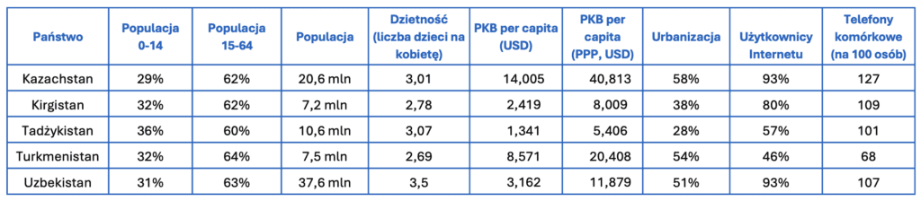 Tabela 1: Profil konsumencki państw Azji Centralnej (dane na 2024 r.)